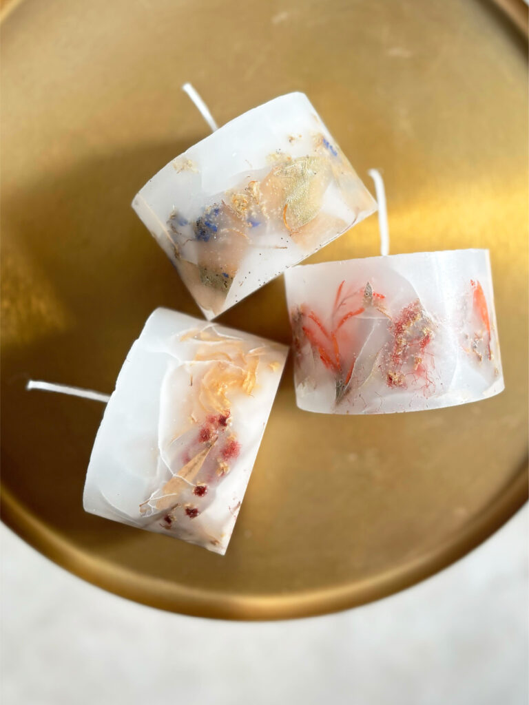 朝はボタニカルキャンドルづくり。光を透かすたび、植物の影が優しく揺れる冬限定のボタニカルキャンドル。