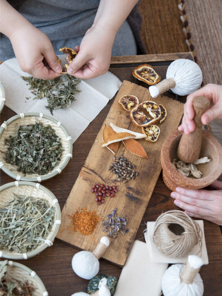 ハーブボールはアジアの伝統療法の一つで、心と体を温めるお灸のような養生法です。